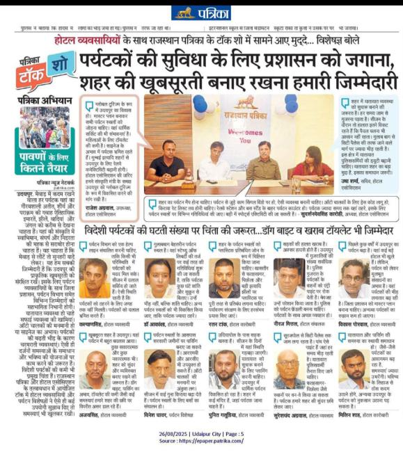 होटल एसोसिएशन उदयपुर ने नवनियुक्त कमिश्नर का किया स्वागत, 10 वर्षीए होटल लाइसेंस नवीनीकरण पर की चर्चा।